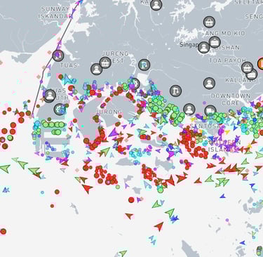 I passed five massive ships across the northbound lane, then swung right to negotiate entry into the southbound lane. Everything was good... or so I thought. There they were - fishing boats, lit up like the stern of a cargo ship, heading north in the southbound lane (so deceptive). In one particular case I had to alter course significantly to avoid another floating, stadium-lit longtail. What baffles me is how the massive ships simply carve through these boats. They can't possibly see them (no AIS, nor visible on radar), and the fishermen's tactic of shining a lone green light at a tanker either confuses the bridge or encourages a mowing-down.