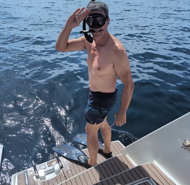 We're finding it necessary to dive often to check the keel, rudder, and props for fouling from the endless stream of floating seaweed and rubbish. The whole boat shudders violently when we snag something big, like that hessian rice sack that wrapped around the prop. Smaller issues, however, reveal themselves more subtly—through increased fuel consumption and slightly reduced speeds. The silver lining? It gives us a great excuse to stop, drift, and have a cooling dip. Thankfully, the only crocs in the Philippines likely to bother you are the discarded plastic ones (unfortunate for the environment, though 😒).